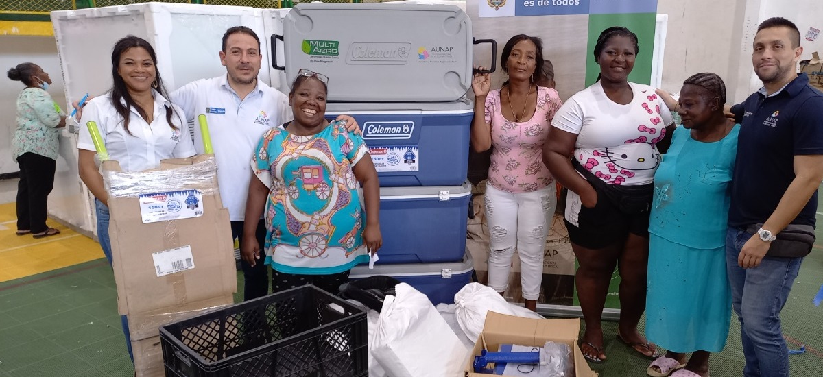 El Ministerio de Agricultura y la Autoridad Nacional de Acuicultura y Pesca (Aunap) entregaron en Buenaventura, Valle del Cauca, elementos e insumos para beneficiar a 112 mujeres platoneras de ocho asociaciones del puerto.