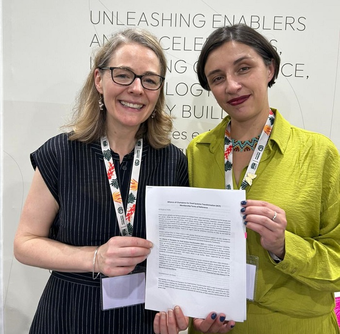 La jefa de la Secretaría de la Alianza de Campeones para la Transformación de los Sistemas Alimentarios (ACF), Emma Williams, y la ministra de Agricultura y Desarrollo Rural, Martha Carvajalino, suscribieron el ingreso de nuestro país a esa coalición durante la COP30, que se celebra en Belém, Brasil.