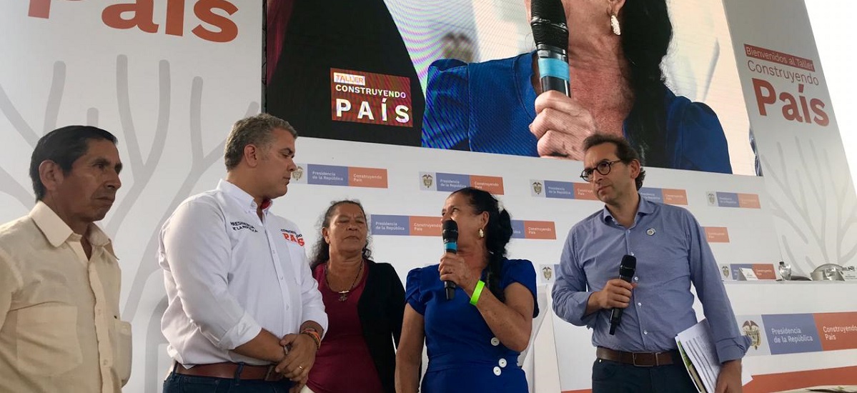 Además, Junto con la Unidad de Restitución de Tierras, URT, el Ministro Valencia presentó al presidente Iván Duque el caso de restitución de tierras en la inspección El Placer, ubicada en la zona rural del Valle del Guamuez, la cual equivale a 155 hectareas y que apoya a 66 grupos familiares, que cambiaron elcultivo ilicito de coca por la siembra de pimienta.