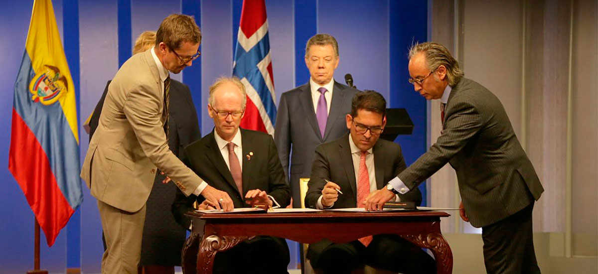 Bogotá, 9 abril 2018 (@MinAgricultura-@JuanGZuluaga) En la visita de la Primera Ministra de Noruega, Erna Solberg, el Ministro de Agricultura y Desarrollo Rural, Juan Guillermo Zuluaga Cardona, firmó el Memorando de Entendimiento para la Cooperación del sector pesquero y acuícola en el marco del programa noruego Pesca para el Desarrollo.