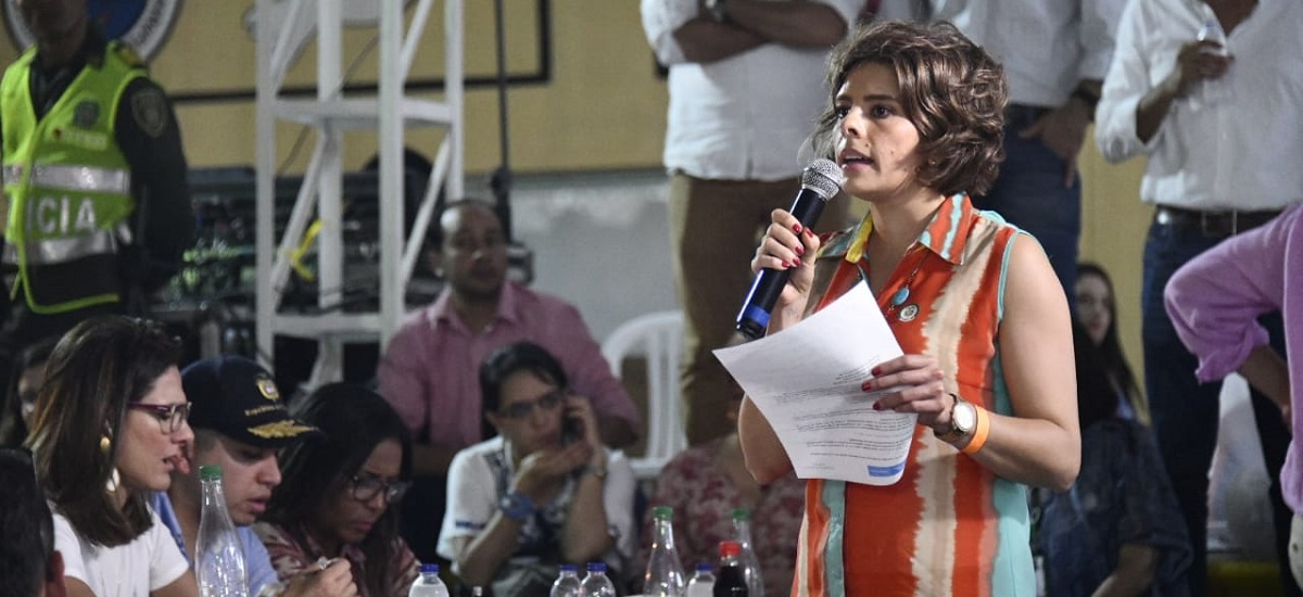 Aracataca, Magdalena abril 7 de 2019. (@MinAgricultura). La viceministra de Asuntos Agropecuarios, Marcela Urueña, acompañó la comitiva del Presidente Iván Duque en el Taller Construyendo País #26 realizado en las instalaciones de la Institución  Educativa Departamental Gabriel García Márquez, en Aracataca, Magdalena.